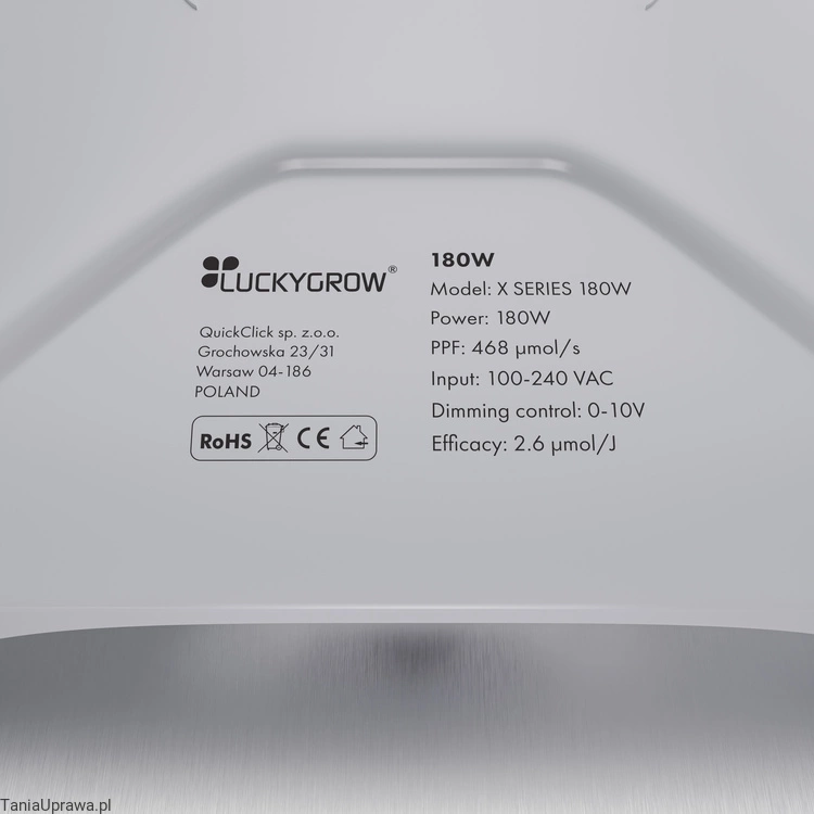 LUCKYGROW X-SERIES 180W 2.6 µmol/J - lampa LED do uprawy roślin | pokrycie do 80x80cm