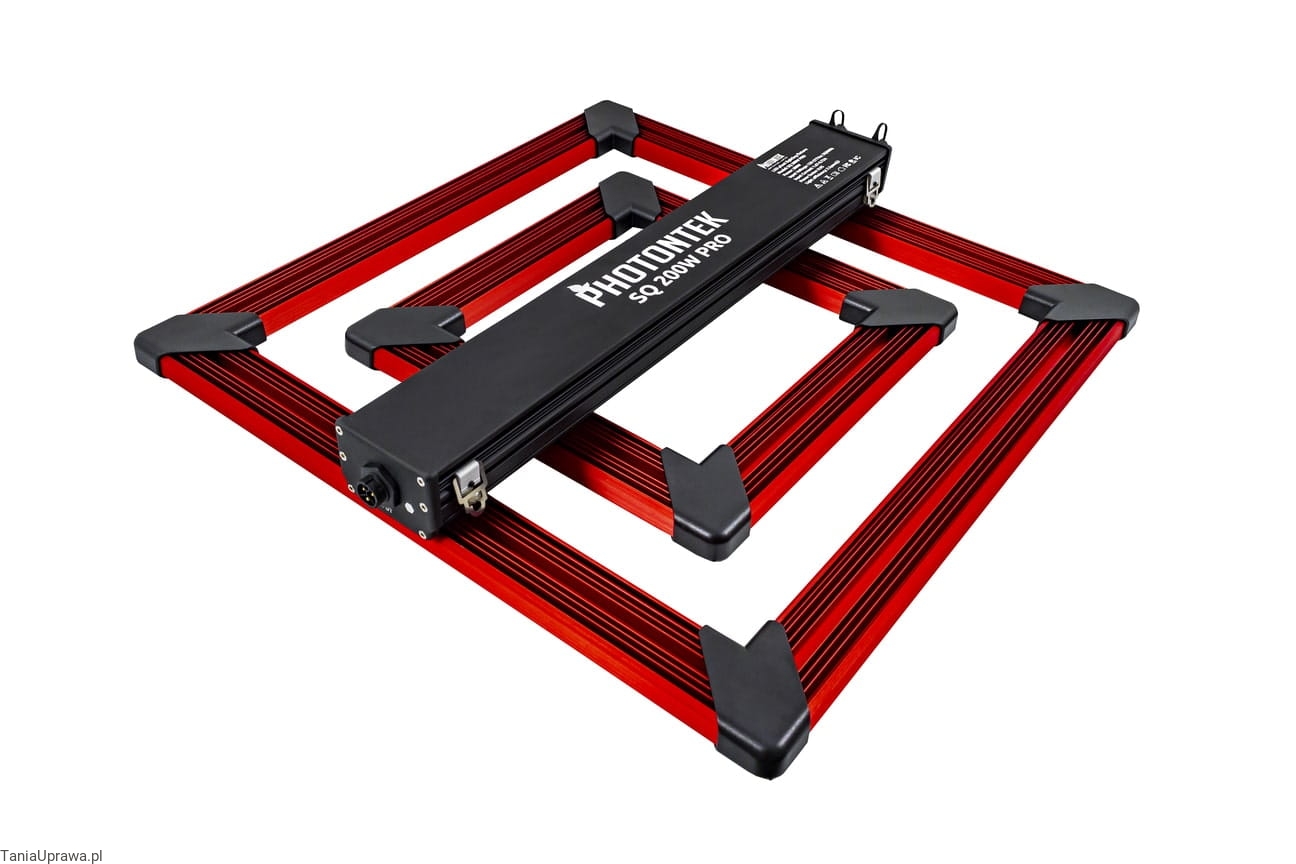 Lampa LED Photontek SQ200W PRO LED to kompaktowe, lecz bardzo wydajne oświetlenie typu full-spectrum zaprojektowane z myślą o uprawach w niewielkich przestrzeniach. Dzięki konstrukcji z kwadratowych listw LED, urządzenie zapewnia równomierny rozkład światła i wysoki poziom PPFD nawet przy bliskim zawieszeniu nad roślinami. Idealnie sprawdzi się w grow-tentach, szklarniach indoor, uprawach domowych i innych zastosowaniach, w których przestrzeń jest ograniczona.