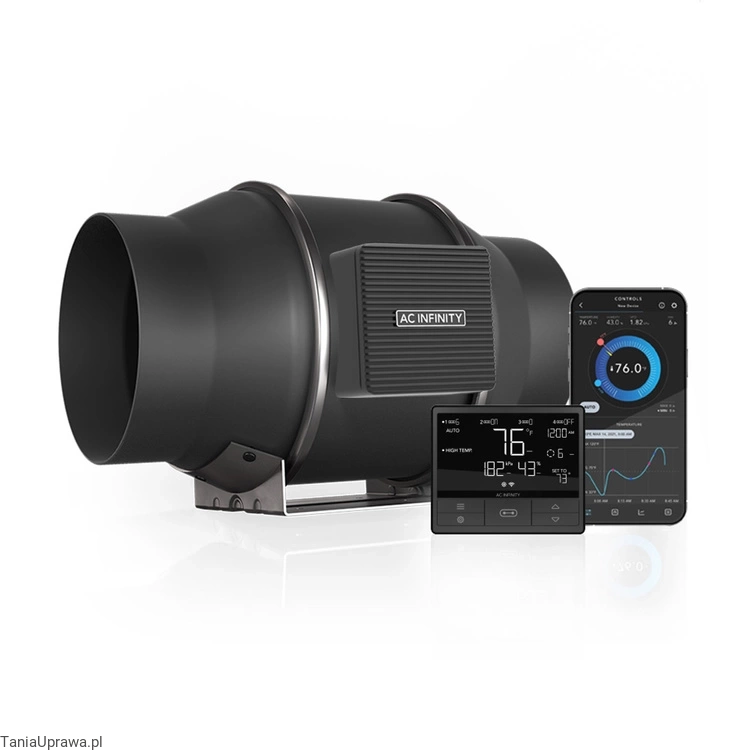 Wentylator AC Infinity Quiet Inline 100mm 350 m3/h 10 trybów + kontroler wilgotności i temperatury
