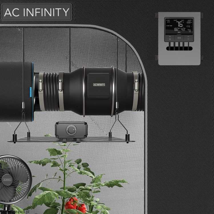 - Wyposażony w przewodowy pilot-regulator prędkości wentylatora o 10 stopniach; kompatybilny również ze wszystkimi kontrolerami UIS (kontrolery od firmy AC Infinity) z inteligentnym programowaniem.